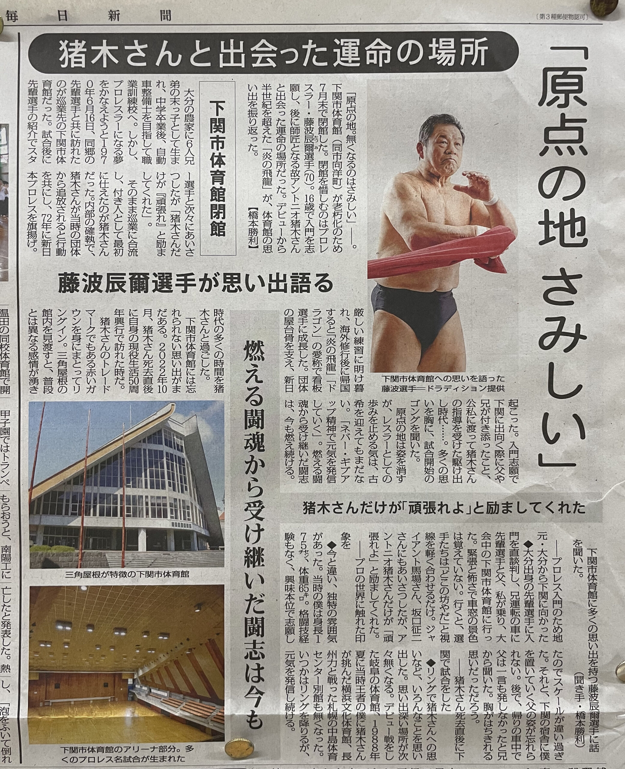 そしてもう一つ、先日毎日新聞の朝刊に掲載されたエピソードを。1970年6月16日、大分の農家の6人兄弟の末っ子だった16歳の少年がプロレス興行が行われる下関市体育館に入門志願にやってきた。そこでアントニオ猪木と会い、そのまま巡業に合流し猪木の付き人を務めることになる。後の“ドラゴン”藤波辰爾である。