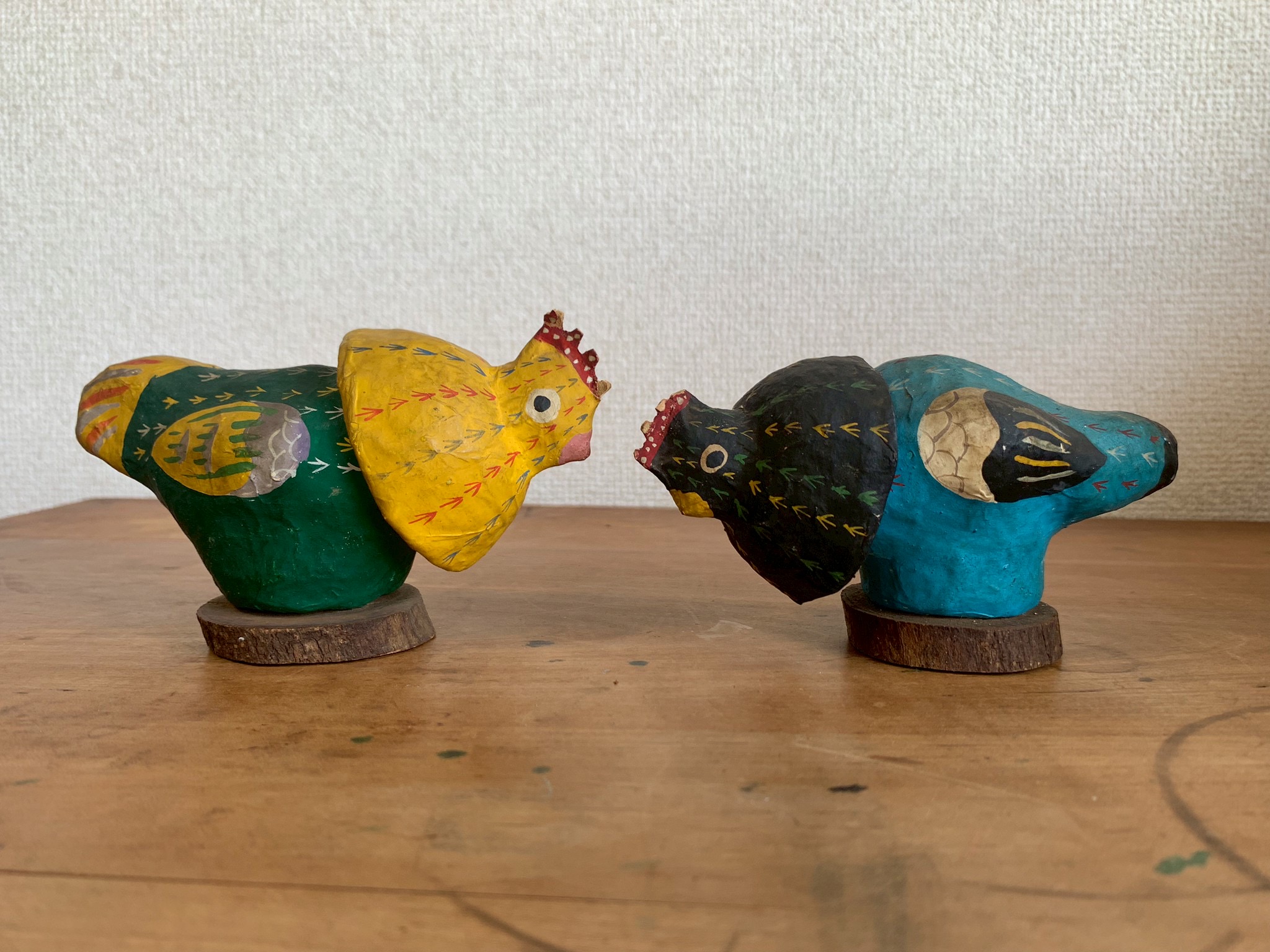 闘鶏を象どった『タウチー』は本来なら紐がついた代車があり、紐を引いて代車を動かすと2匹の軍鶏の首がゆらゆら動き、突き合う仕組みになっています。闘鶏も東南アジアから沖縄、さらに本土に伝わったとされています。闘鶏で賭けをする風習があったようで人々は軍鶏を大切に育てていたそうです。
