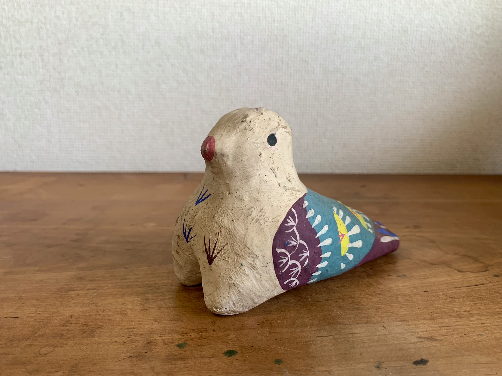 沖縄には上記したタウチーをはじめ動物の張子が様々ありますがこれは鳩を象った張子です。他にも獅子を象った『シーサーグヮー』虎を象った『トラグヮー』などがあります。語尾についている“グヮー”というのは“こ”の意味で『犬っこ』などに使われる「小さい、可愛い」などのニュアンスの接尾辞だそうです。沖縄の言葉は難しくて楽しい。