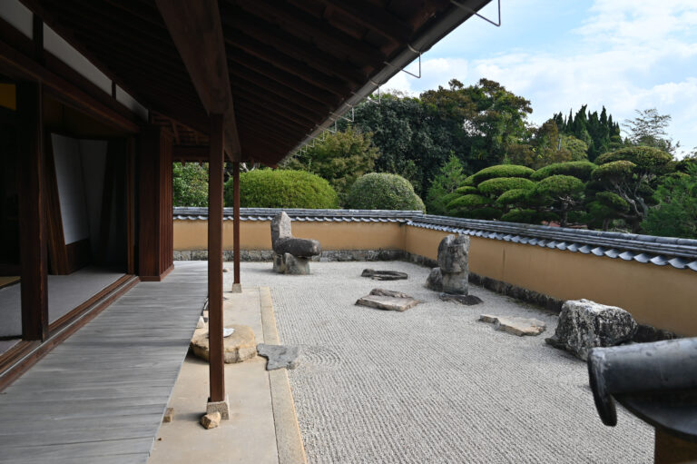 二つ目。周南市鹿野の漢陽寺。こちらもJR徳山駅から車で40分程度。漢陽寺では昭和を代表する作庭家 重森三玲と弟子の斉藤忠一氏による庭を見学することができる。寺裏山から流れ出る遣り水を活かした枯山遣水式の庭園を含んだ漢陽寺庭園は令和3年に国の登録記念物(名勝地関係)に登録されている。京都では重森三玲による名庭をいくつか見ることができるが、山口県の片田舎でこんなに身近に触れることができるのはとても贅沢な体験。