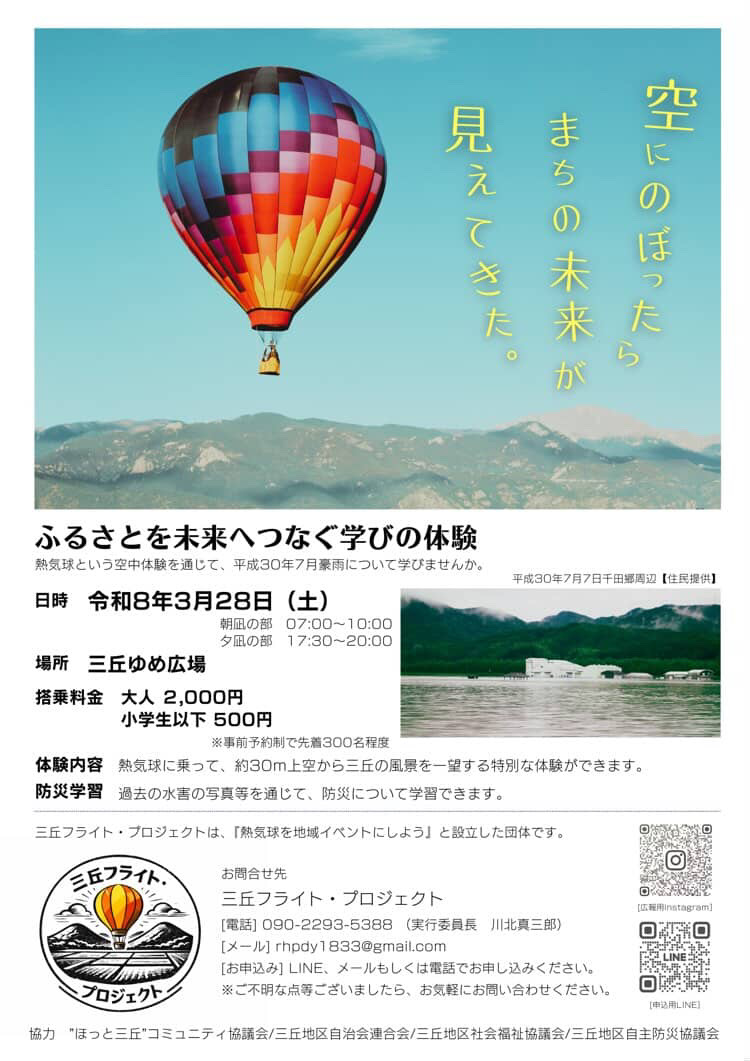 熱気球という空中体験を通じて、平成30年7月豪雨について学びませんか。